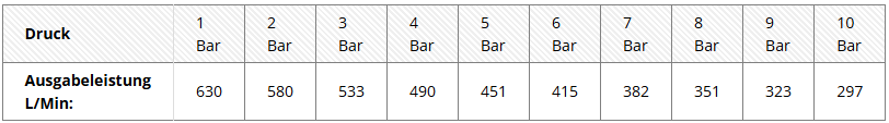 | Maximaldurchfluss: | 630 L/Min. |