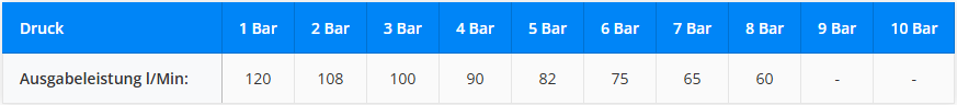| Maximaldruck: | 8 bar |