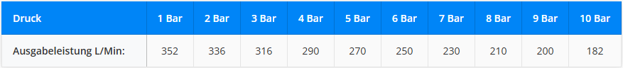 - Zwei kraftvolle Kolben-Motoren treibt den Kompressor mit einer Gesamtleistung von 3,94 PS bzw. 2,9 kW an und sorgt für eine maximale Abgabeleistung (max. Luftdurchsatz) von 500 l/min. Zudem reduziert das ölfreie System den Wartungsaufwand auf ein Minimum.