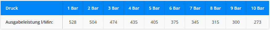 - Drei kraftvolle Kolben-Motoren treiben den Kompressor mit einer Gesamtleistung von 5,91 PS bzw. 4,35 kW an und sorgen für eine maximale Abgabeleistung (max. Luftdurchsatz) von 750 l/min. Zudem reduziert das ölfreie System den Wartungsaufwand auf ein Minimum.