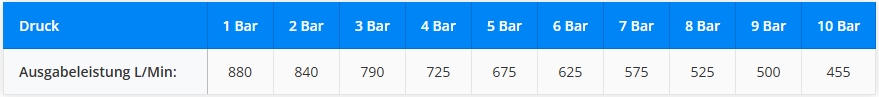 | Maximaldurchfluss | 1250 l/min |