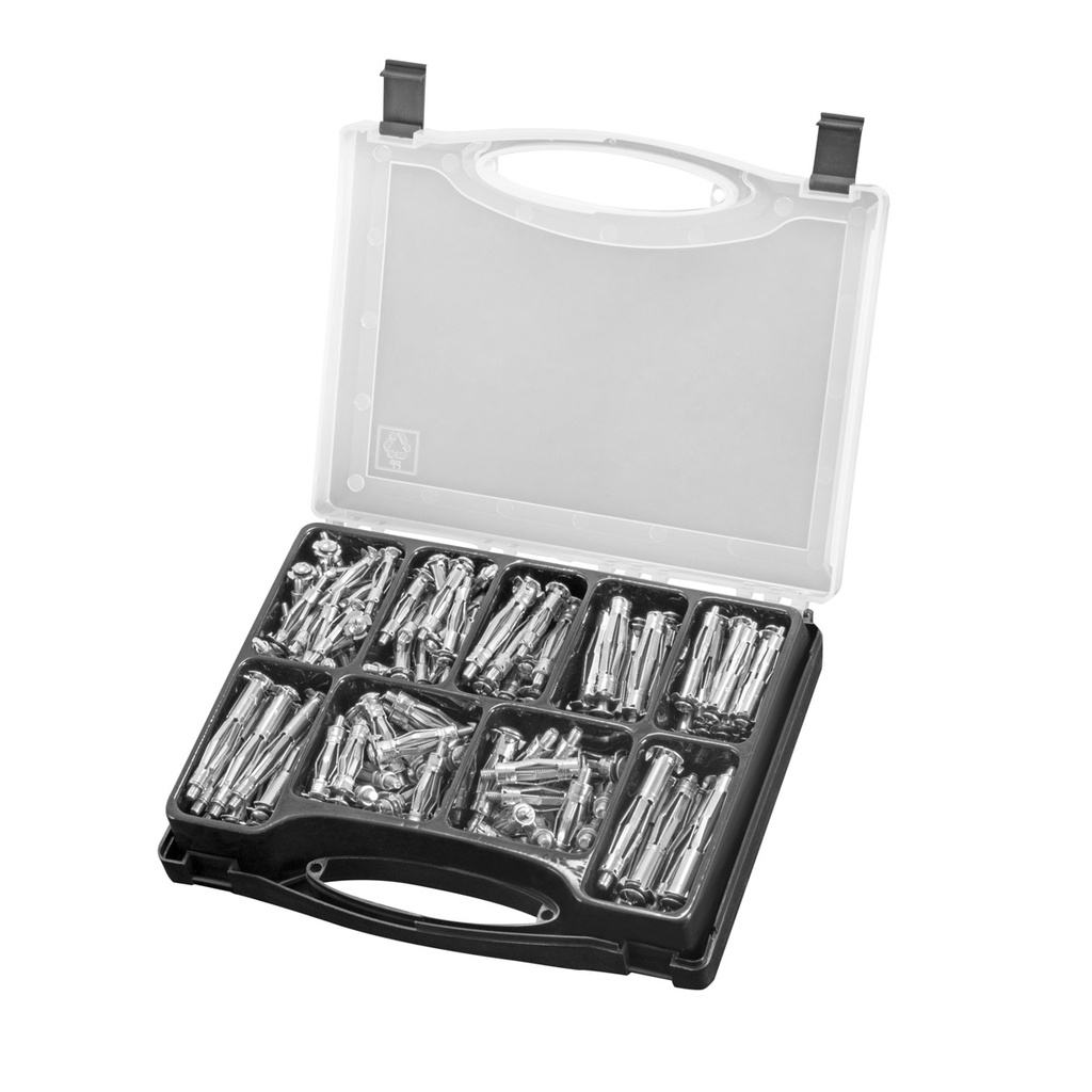 - Das 141-teilige Metalldübel-Set besteht aus Hohlraumdübeln mit vormontierten Schrauben in den Größen M4 x 32, M4 x 38, M4 x 46, M5 x 37, M5 x 52, M5 x 65, M6 x 37, M6 x 52 und M6 x 65.
